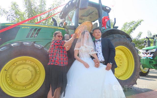 ▎青農迎娶美嬌娘 曳引車當結婚禮車沿途超吸睛